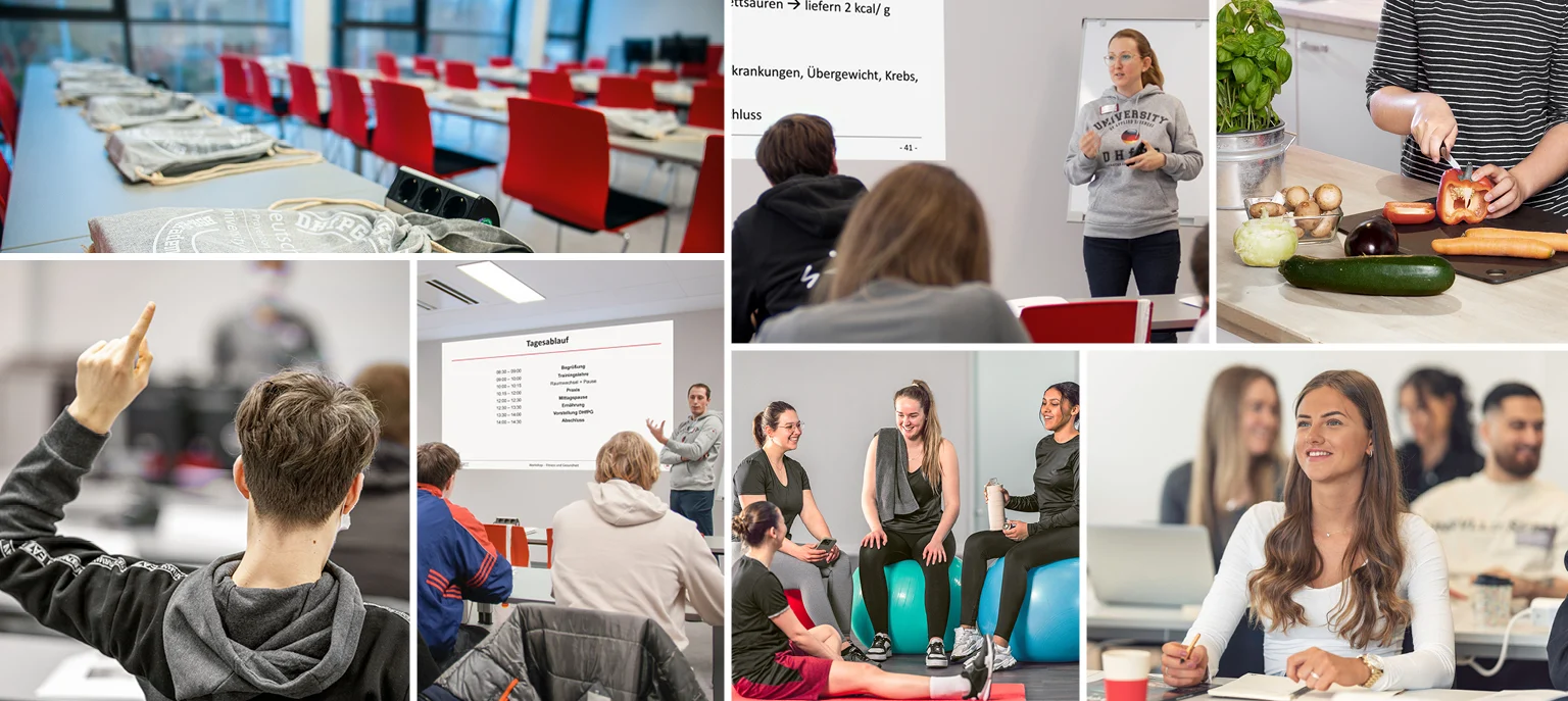 Sie besuchen uns mit Ihrer Klasse an einem DHfPG-Studienzentrum in Ihrer Nähe (Standorte s. unten). Die Schülerinnen und Schüler erhalten Einblicke in die Gegebenheiten vor Ort sowie in das Studierendenleben und werden bei einem Vortrag sowohl theoretisch als auch praktisch, bspw. im Trainingsraum vor Ort, eingebunden. Der Schwerpunkt des Vortrags kann im Vorfeld gewählt werden. Die Veranstaltung dauert ca. 60-90 Minuten, kann nach Wunsch jedoch zeitlich angepasst werden.
